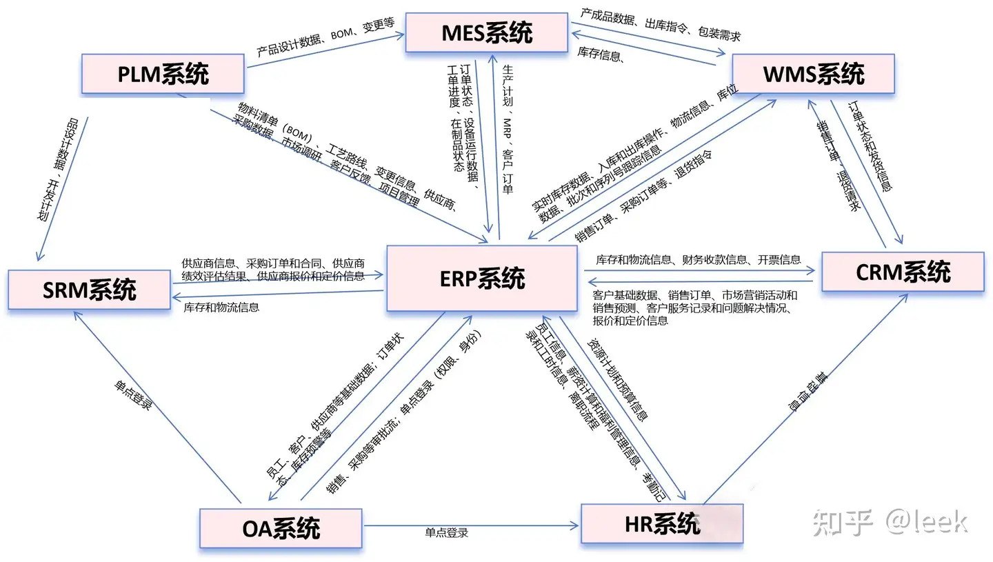 ERP(企业资源计划)、CRM(客户关系管理)、MRP(物资需求计划)、PLM(产品生命周期管理)、APS(高级计划与排程)、MES(制造执行系统)、WMS(仓库管理系统)以及SRM(供应商关系管理)等系统关系复杂,却又相互依存。