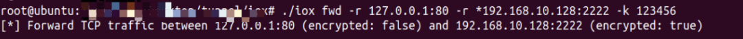./iox fwd -r 127.0.0.1:80 -r *192.168.10.128:2222 -k 123456