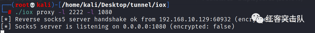 logger.Success("Reverse socks5 server handshake ok from %s (encrypted: %v)", session.RemoteAddr().String(), cenc) logger.Success("Socks5 server is listening on %s (encrypted: %v)", local, lenc)