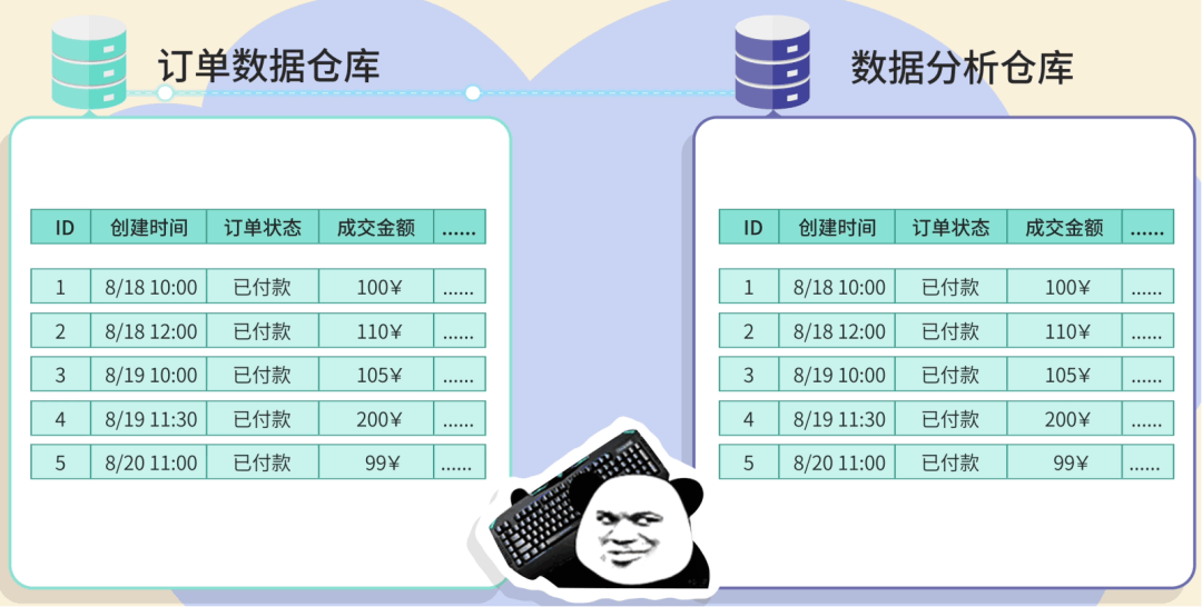 你是小阿巴,刚入职一家电商公司。 ![]() 第一天上班,老板就交给你一个艰巨的任务:定期把公司的订单数据同步到数据分析仓库。 一听到数据同步这 4 个字,你立刻汗流浃背了。 ![]() 你的哥哥程序员鱼皮,曾经就是在大公司负责数据同步。结果双十一当天,近 2 小时的订单数据没有同步过去。数据分析团队看到的数据是 2 小时前的,以为销量没达到预期,就没有及时给热销商品补货。最终错失了 1 个多亿的销售额!鱼皮也因此被老板优化掉了。 ![]() 作为一名程序员,怎能轻易退缩?你握紧拳头,一定要完成好这个任务! ![]()