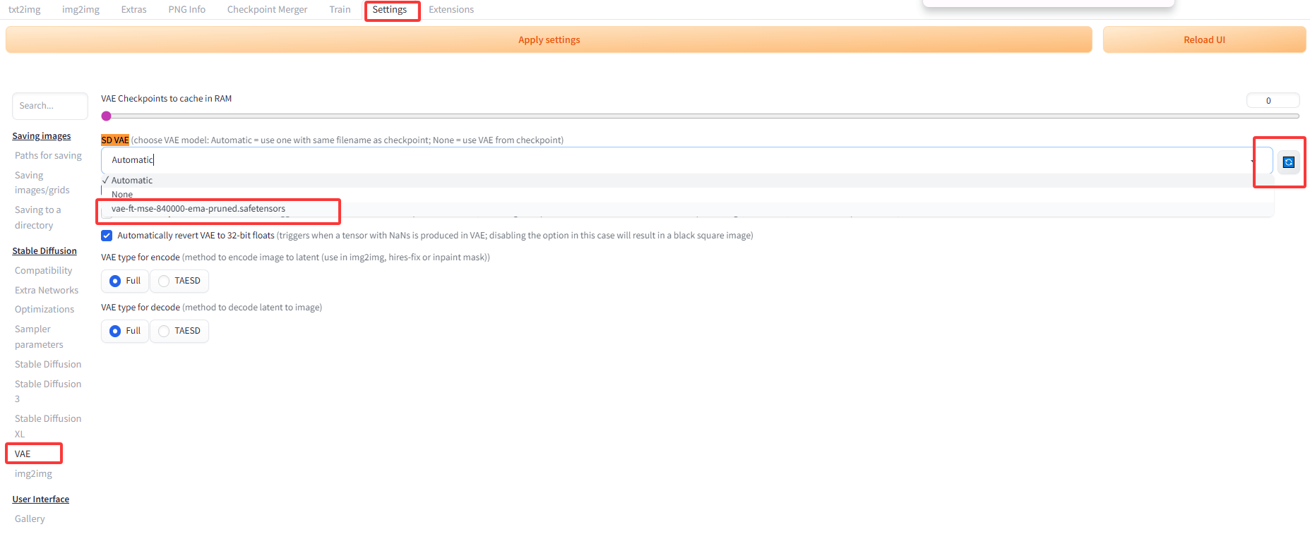 (2):解码器下载,这里使用社区开源的解码器 下载后存放在文件夹 \stable-diffusion-webui\models\VAE 。