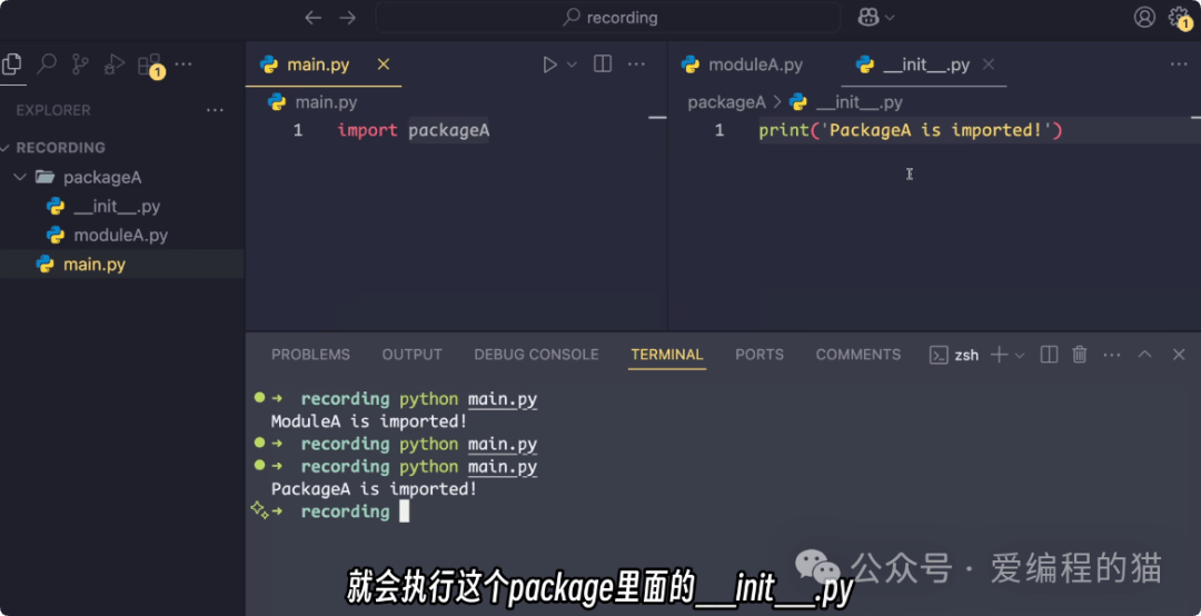 我们通过具体代码案例,拆解了__init__.py除 “身份标识” 外的核心实用功能,每一步都有清晰的代码演示和效果说明: