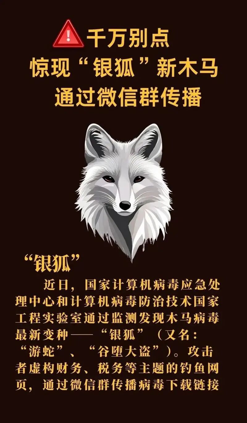 银狐(又名“游蛇”“古堕大盗”)是一种针对政府、高校、医疗以及企事业单位等行业从业人员进行攻击的木马病毒变种。