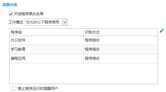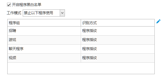 开启应用程序黑白名单后,可配置只允许特定程序在公司内部使用或者禁止访问一些高危程序。