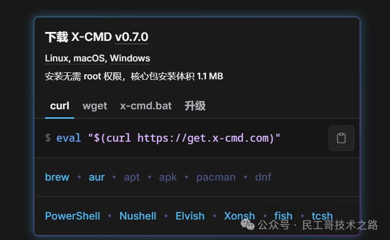 手动安装:如果一键安装失败,或者需要更灵活的安装方式,可以手动下载 x-cmd 的安装包,并按照提示进行安装。