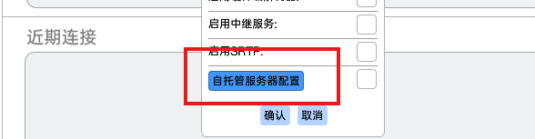 1. 勾选使用自托管服务器配置,点击确认配置生效。