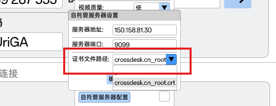 1. 证书文件路径选择框中找到 crossdesk.cn_root.crt 的存放路径,选中 crossdesk.cn_root.crt,点击确认。