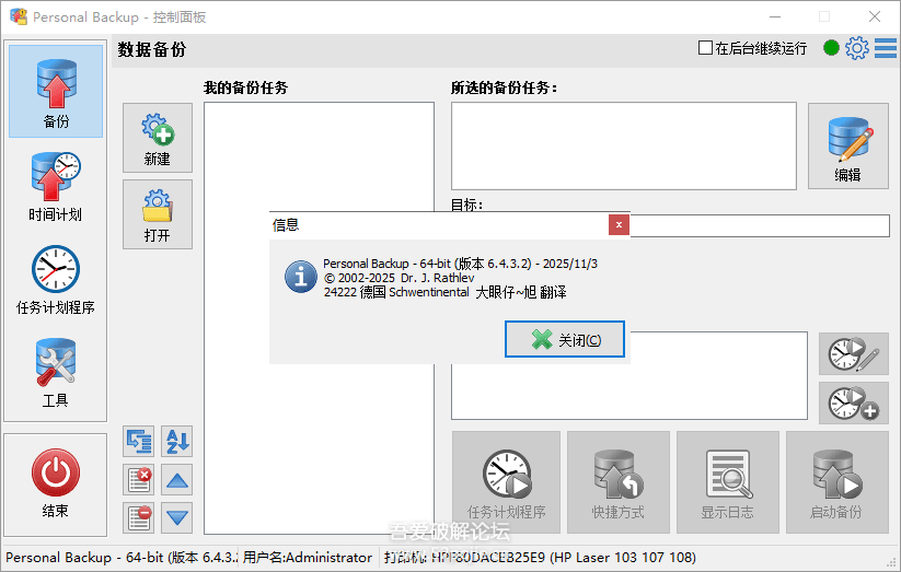 X64位:https://personal-backup.rathlev- ... up-x64-6.4.0302.exe