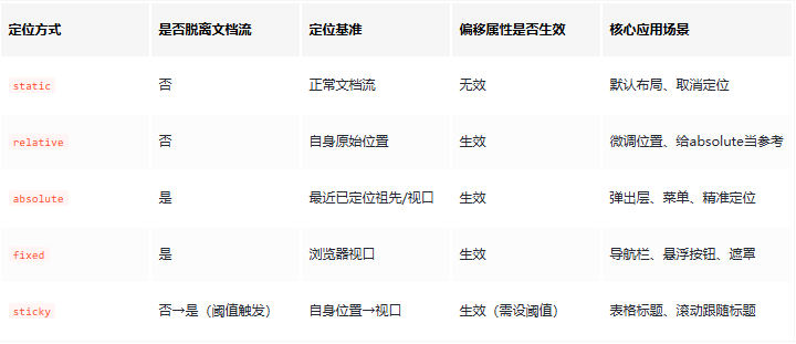 这张对比表是定位知识的「精华总结」,建议收藏起来,遇到布局问题时随时查阅: