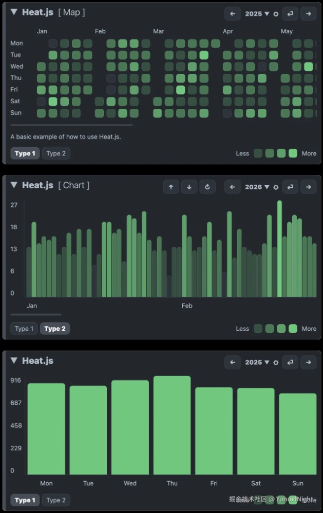 想展示用户的登录活跃度?想用热图展示文章的发布频率?Heat.js帮你轻松实现!就像GitHub的贡献图一样,让你的用户看到自己的「努力成果」,成就感满满!