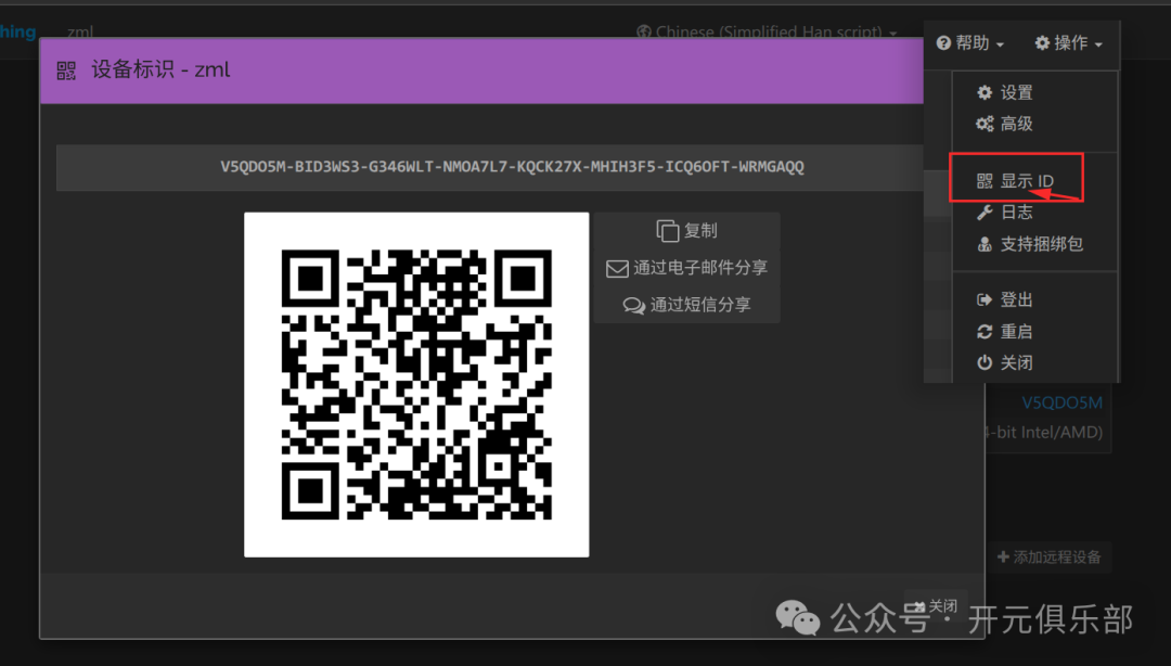 • • 在 服务器 A 的界面上,点击右下角“操作” -> “显示 ID”,复制那一长串 ID。