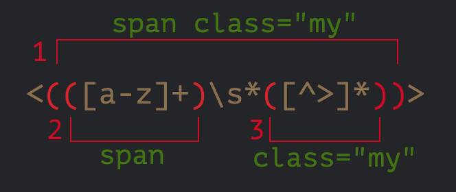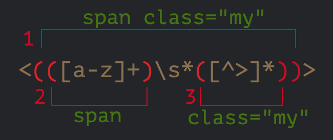 让我们为它们添加括号:<(([a-z]+)\s*([^>]*))>