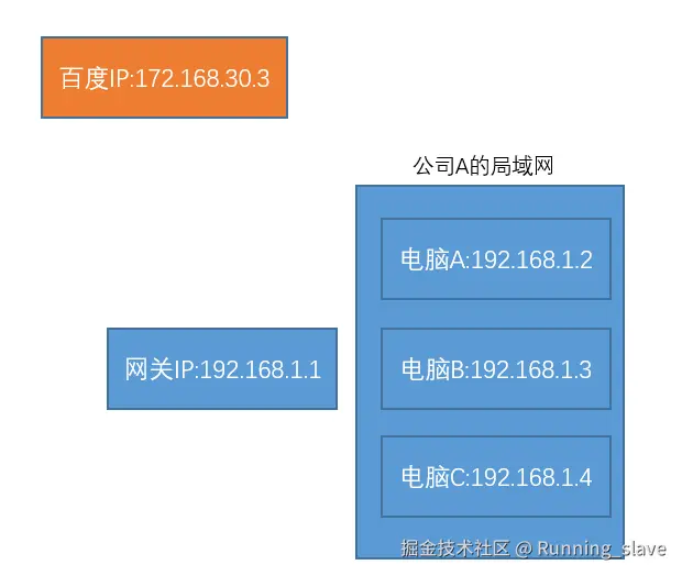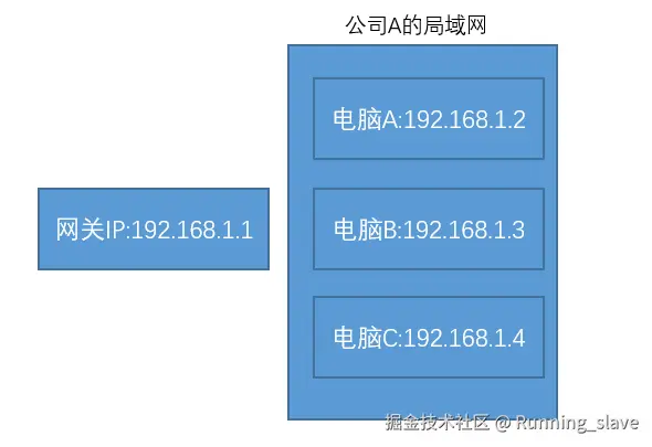 假如我们给公司A分配了一个IP=192.168.1.1,把这个IP作为这个公司网关。