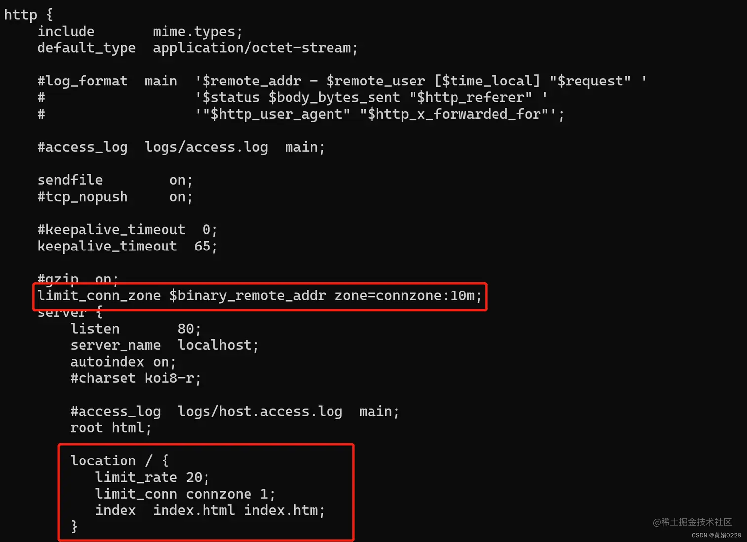 • limit_conn_zone:将连接数限制在完整区域范围内,而不是在整个 Nginx 实例中限制连接数。