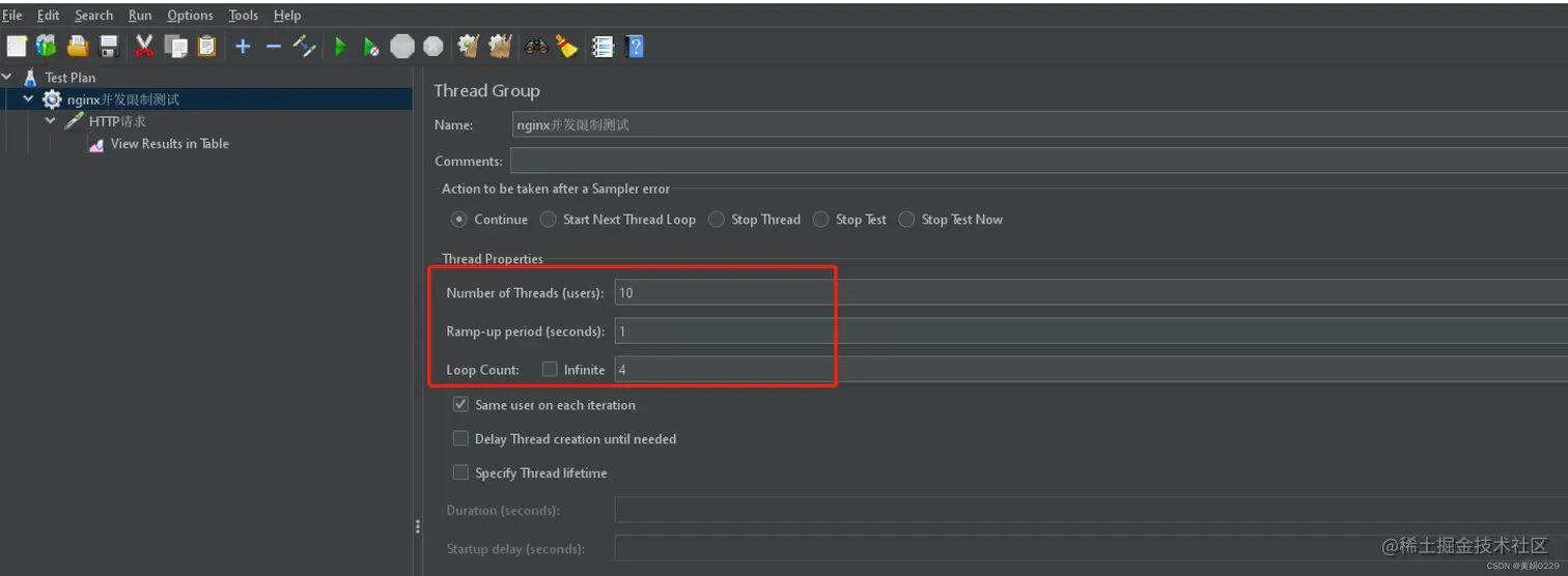 如下图,可以看到有4次成功,并且都是在线程组的第一个成功,说明限制并发数1生效