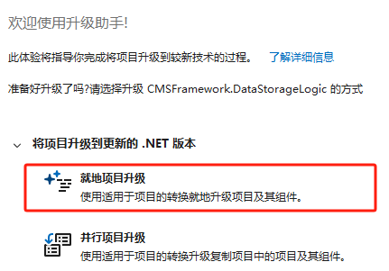 完成后,重新打开项目,选中要升级的项目,鼠标右键,选中升级,选中就地升级项目(升级前最好先将本地的引用截图保存,后面升级后进行比较,将缺少的依赖再引用)