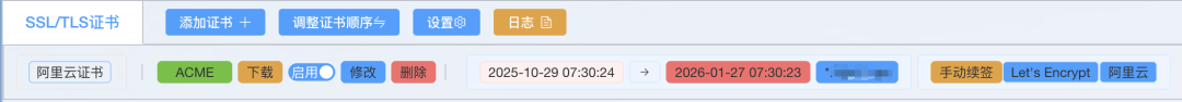 支持自动申请和续签 Let's Encrypt、ZeroSSL 等免费 SSL 证书,支持多家 DNS 服务商的 API 验证。