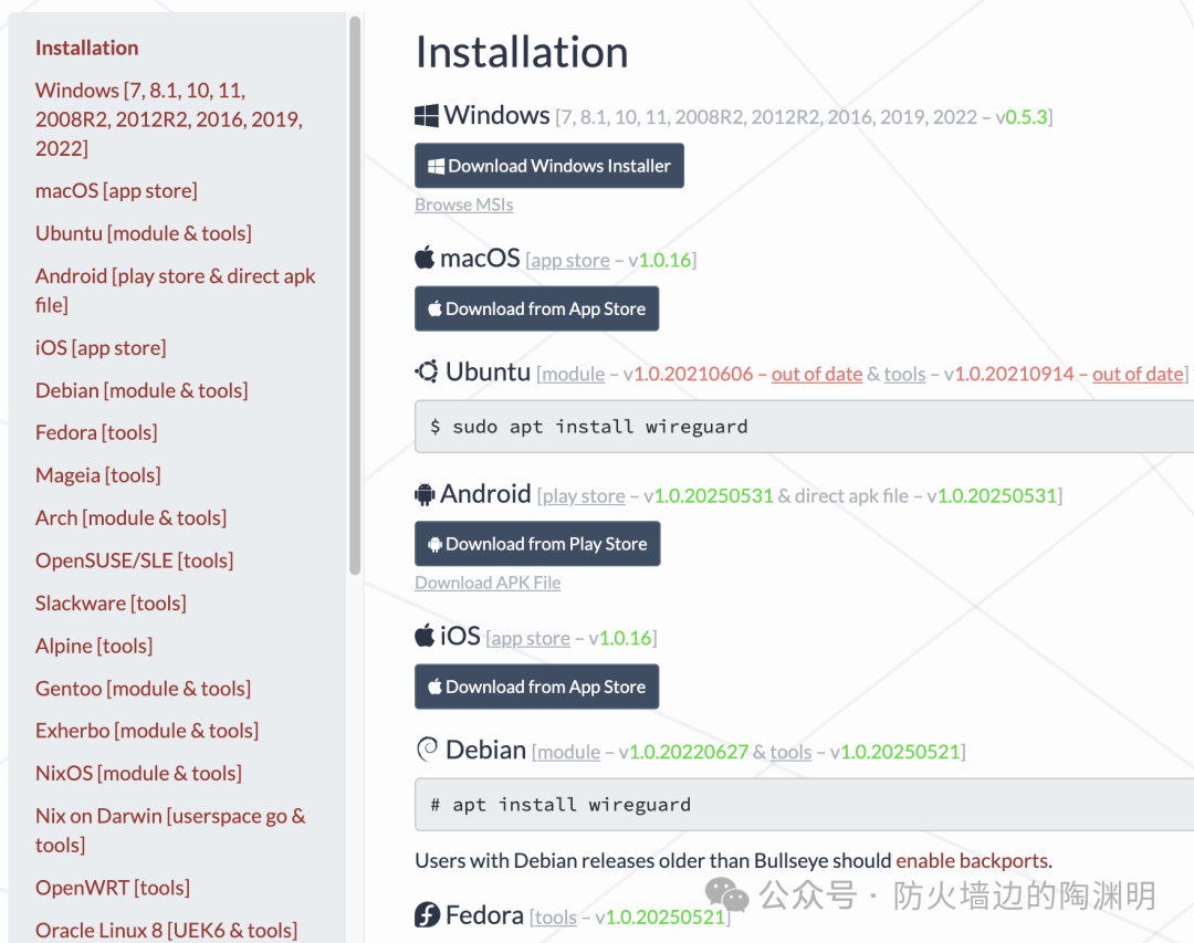 我们之前介绍过如何通过 OpenVPN 访问家里的网络,更多信息请参考OpenVPN 部署实用指南。 收到了很多小伙伴的留言和私信,其中关于 WireGuard 的呼声实在太高,再加上各宽带运营商在分配 IPv4 公网地址这件事情上越来越小气,投向 IPv6 的怀抱才是未来——基本都能轻松拿到 IPv6 的公网地址。且可以为家中的每一个设备都分配一个,IPv4 时代从来没打过这么富裕的仗,这吸引力不可谓不大。 那么本期我们就来搞定 WireGuard 的部署~ WireGuard 是什么?WireGuard 是一款基于现代加密技术的开源 VPN 协议,由 Jason A. Donenfeld 于 2016 年开发。它最初是为 Linux 内核设计的,但现在已支持 Windows、macOS、iOS、Android 等全平台。Linus Torvalds 在邮件中称赞 WireGuard 是“可读性和安全性兼备的典范”,并于 2020 年 3 月合并至 Linux 内核(随 Linux 5.6 正式发布)。这位大佬的脾气大家都知道,总听到他骂人,能得到他的称赞从另外一方面也证明了 WireGuard 的强大。 相比传统 VPN 协议(如 OpenVPN、IPSec),WireGuard 的最大特点就是——轻量、快速、安全、易配置。 英文全称:WireGuard VPN 我们选择 WireGuard 的另外一个主要原因是它对 IPv6 支持的更好。