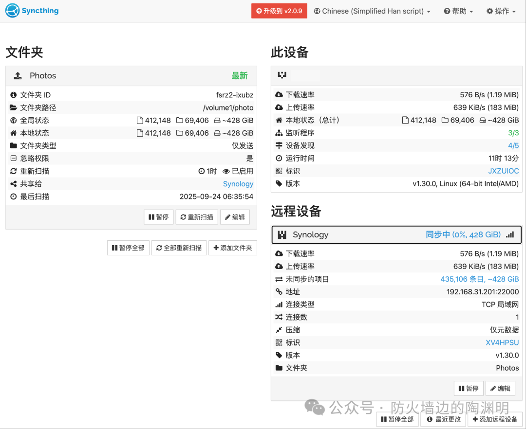 Syncthing 让不同 NAS 之间的文件同步变得非常轻松: