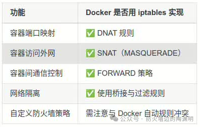 Docker的网络功能如此强大,仅靠其自身是很难独立实现的,必须有高人相助,没错,它就是我们的老朋友iptables, 更多信息请参考一文看懂iptables,告别小白防火墙配置!