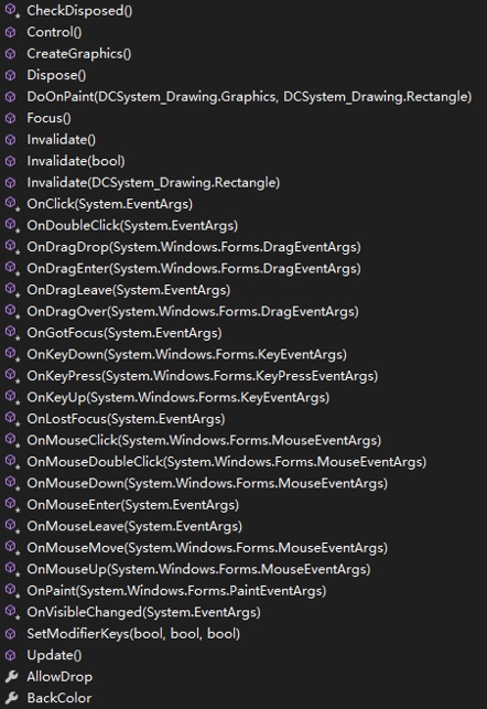 要实现这个架构,核心是模拟出System.Windows.Forms.Control和System.Drawing.Graphics类型,只要模拟得足够像,则DCWriter核心模块无需大改就能运行起来。这样DCWriter核心模块和用户操作也能形成闭环,达成实时互动。这就是将WinForm.NET程序迁移到Blazor WASM平台上的基本原理。 3.实现过程按照这个架构图,我们如下进行分步实现的: 3.1.模拟System.Windows.Forms.Control类型Blazor WASM架构中是没有System.Windows.Forms.dll的,因此我们来创建一个C#类型 public class Control{}。该类型包含以下成员: