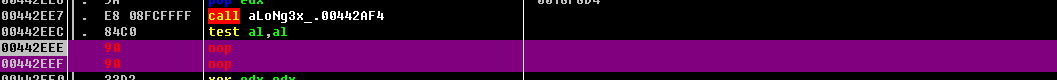 00442EE7  |.  E8 08FCFFFF   call aLoNg3x_.00442AF400442EEC  |.  84C0          test al,al00442EEE  |.  74 1C         je short aLoNg3x_.00442F0C