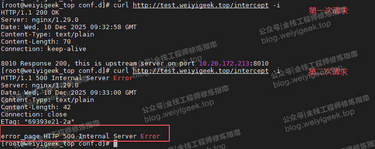 $ curl http://test.weiyigeek.top/intercept -i weiyigeek.top-拦截上游服务错误自定义错误页面图