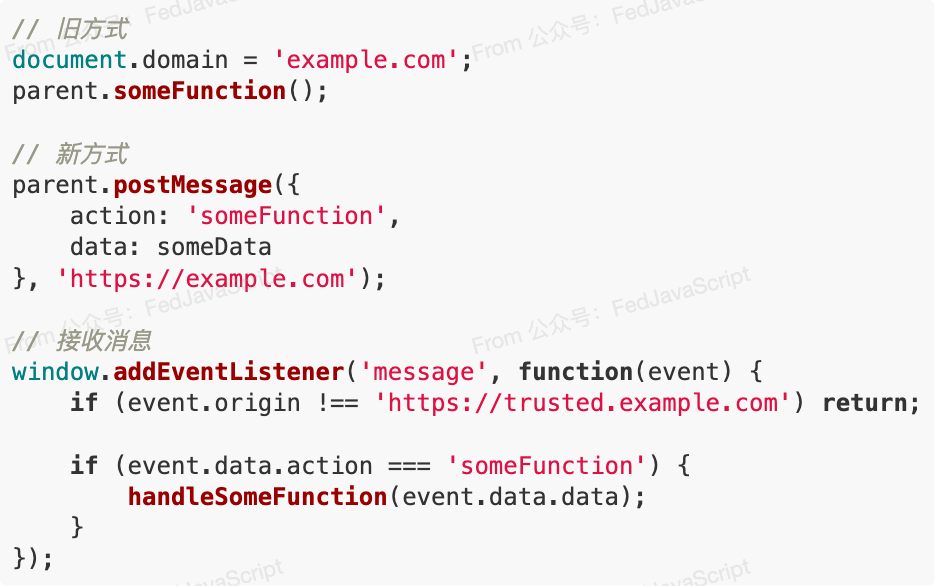 现代Web平台提供了更安全、更灵活的跨域通信方案: