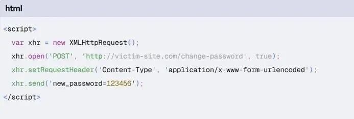 6. 发起CSRF攻击 攻击者可以通过XSS攻击在用户的浏览器中插入恶意脚本,发起跨站请求伪造(CSRF)攻击,从而在用户不知情的情况下执行恶意操作。 示例代码: