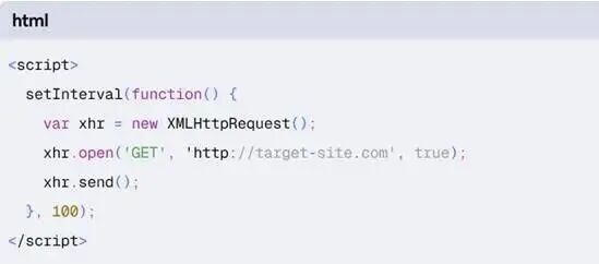 8. 发起DDoS攻击 攻击者可以通过XSS攻击在用户的浏览器中发起分布式拒绝服务(DDoS)攻击,向目标服务器发送大量请求,导致目标服务器瘫痪。 示例代码: