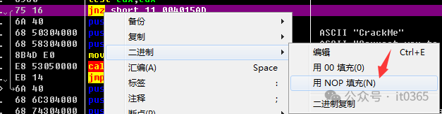 第二种方法:更直接的把JNZ直接NOP掉强制它完成注册:修改后,可以将修改的保存成新软件后,就随便输入字符都能完成注册了。第三种方法:找出它的注册码生成算法,逆推出注册码算法,写成注册机。这个软件从上面的对比发现它是和一个固定字符在比较。那它的真正的注册码为:这样整个软件的分析和逆向就完成了。也是非常简单适合破解入门的新手学习和练手!