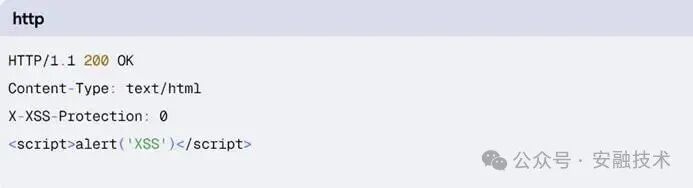 2. 跨站脚本攻击(XSS): • 攻击者可以通过注入X-XSS-Protection头,禁用浏览器的XSS保护机制。 • 示例: