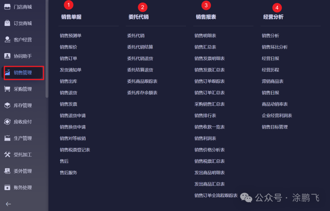 接下来,我将带领大家去查看金蝶云星辰旗舰版各个功能菜单的去全貌。 快捷应用![]() 快捷应用提供了我的收藏、增值服务、生态服务功能。其中我的收藏可以将常用的功能收藏于此,后续可以通过此链接直接快速进行对应的功能页面。 老板看板![]() 老板看板主要提供了利润分析和资金分析这两块针对小型企业非常重要的功能,小型企业一般处于发展阶段,主要为赚取利润为主,同时要保证现金流的正常。 门店管理![]() 门店管理的功能非常丰富,有零售单、预计寄存、门店补货、销售报表、店务报表、轻餐管理者几大核心功能子模块。 ①零售单:负责门店零售业务,包含零售单、结存单,管理现金缴款、收银员交接班及开票、发货等,是门店销售的核心操作入口。 ②预订寄存:管理预订与寄存业务,涵盖预订单、订金记录及核销,同时处理寄存单、流水与商品汇总,还支持门店直配,支撑门店预订类服务。 ③门店补货:统筹门店补货流程,包含要货单、配货单、发货单,支持返配申请、统一调拨及店间调拨,保障门店库存补给高效。 ④销售报表:统计门店销售数据,含零售单明细、销售汇总表、收银日报、销量统计等,还能跟踪预订单与挂单,助力销售进度监控。 ⑤店务报表:记录门店后勤数据,涵盖要货日报、明细 / 汇总表、配货汇总表及出货差异明细,辅助门店补货与库存管理的复盘。 ⑥轻餐管理:支撑轻餐类门店运营,包含扫码点单、桌位 / 区域管理,对接外卖订单,同时管理平台券授权、核销及增值服务购买,适配轻餐场景需求。 金蝶云星辰门店管理模块从零售、预订、补货,到销售统计、店务记录、轻餐运营,构建了门店全场景管理体系,保障门店日常运营高效有序。 会员管理![]() 会员管理是金蝶云星辰系统中提升客户粘性与运营效率的重要模块。 ①会员资料:管理会员核心信息,包含会员级别、信息、储值 / 积分账户,同时配置级别折扣、共享组、升降级规则,是会员管理的基础信息载体。 ②积分:运营会员积分体系,涵盖积分记录、流水,可设置基础 / 高级积分、抵现、清零规则,支持积分兑换商品 / 优惠券,实现积分的全流程管控。 ③储值:管理会员储值业务,包含充值赠送规则、储值记录 / 流水 / 核销,同时支持充次、储值支付限额、储值转换,助力储值类会员权益的精细化运营。 ④服务:支撑会员增值服务,涵盖微信公众号授权、会员卡设置,记录会员分享信息,同时配置公众号消息提醒,提升会员服务体验。 ⑤赊账:管理会员信用赊账,包含还款方案、授信 / 赊账记录、信用流水,同时跟踪第三方挂账的应收与核销,规范会员信用交易。 ⑥会员分析:提供会员数据洞察,含会员分析表、客群分析表,助力评估会员结构与行为,辅助会员运营策略优化。 金蝶云星辰会员管理模块从资料管理、积分储值,到服务、赊账、数据分析,构建了会员全维度管理体系,提升会员运营效率与粘性。 门店营销![]() 门店营销是围绕线下实体门店展开的一系列推广与销售活动,核心是吸引客流、提升到店转化率与复购率,金蝶云星辰门店营销主要包含以下: ①促销 / 优惠券:管理零售促销与优惠券,涵盖优惠券的领、核、销全流程,同时记录优惠券流水,是门店短期促销的核心工具。 ②礼品卡券:运营礼品卡券业务,包含礼品卡 / 券方案设置,以及消费、核销、转移等流水记录,助力卡券类营销的精细化管理。 ③会员营销:开展会员精准运营,提供精准营销、入会有礼、生日有礼等功能,通过个性化福利提升会员粘性。 ④短信服务:支撑营销消息触达,可配置提醒设置,记录短信发送轨迹,同时支持短信购买,助力营销信息的及时推送。 金蝶云星辰门店营销模块从促销工具、卡券运营、会员维护到消息触达,构建了门店全维度营销体系,提升门店获客与留客能力。 门店商场![]() 门店商场模块主要是针对企业有大量门店管理的业务设计开发的。聚焦门店线上商城的运营管理:涵盖商品资料与分组管理,可配置商城首页方案、配送规则及整体商城参数;支持商城订单处理,能设置时段限量销售,管理运费模板,同时可维护小程序发货信息。 订货商城![]() 订货商场是面向经销商、零售商等 B 端客户的线上订货交易平台,连接品牌方或供应商与下游渠道。主要包含以下功能清单: ①订货管理:负责订单全流程操作,包含订单确认、支付记录、订单优惠,同时管理运费模板、自提点等,处理到货签收、商品限购与支付退款,是订货业务的执行入口。 ②商城管理:配置商城基础功能,涵盖搭建指南、系统配置、页面方案、小程序 / 公众号设置,还能管理支付与消息提醒,是商城运行的基础支撑。 ③商品管理:管理商城商品信息,包含商品列表、分类、品牌,同时配置客户价格策略,支撑商品的线上展示与定价。 ④客户管理:维护商城客群,涵盖客户列表、等级管理、潜在客户及用户管理,同时设置登录限制,实现客群的分层运营。 ⑤营销:开展商城推广活动,包含批发促销、优惠券、在线推广、小程序直播等,助力提升商城订单转化。 ⑥积分:管理客户积分体系,涵盖积分账户、设置、规则、抵扣及记录,通过积分激励增强客户粘性。 金蝶云星辰订货商场模块从订货执行、商城配置到商品、客户、营销、积分管理,构建了线上订货商城的全流程运营体系。 客户经营![]() 客户经营模块,其实类似与一个简易版的CR