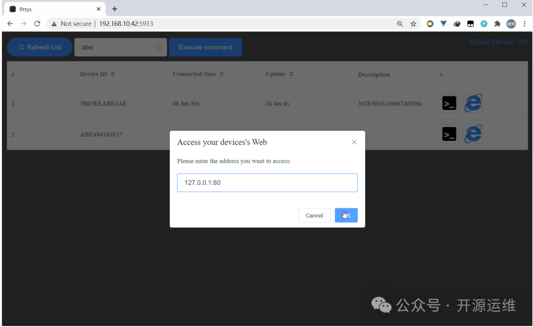 设备标识 每台设备可以设置独立ID,在网页管理界面一目了然。不用记IP,找设备很方便,尤其管理数量多的时候很省事 批量执行 可以同时给多台设备发送同一条命令,比如统一更新或查看状态。结果会并排显示,批量运维时效率提高不少 传输加密 支持SSL/TLS加密通信,数据安全有保障。还支持双向证书认证,防止非法设备接入,用起来更放心