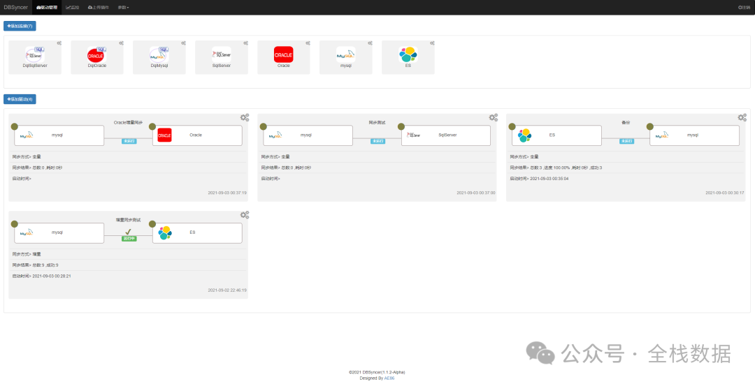在当今数据驱动的时代,企业每天都在产生、接收和处理海量信息——从用户行为日志到交易记录,从IoT设备数据到跨系统业务指标。然而,数据的价值并不在于“拥有”,而在于“可用”与“可信”。这正是现代ETL(Extract, Transform, Load)数据同步工具的核心使命。 一款高效、智能的ETL工具,不仅是连接异构数据源的“桥梁”,更是保障数据一致性、时效性与准确性的“中枢神经系统”。它能够自动化地从数十个源头抽取原始数据,在毫秒级内完成清洗、转换与标准化,并精准加载至数据仓库、湖仓一体平台或AI训练管道中,让决策者随时掌握“此刻的真实”。 更重要的是,在实时分析、个性化推荐、风控预警等关键场景中,延迟几秒的数据可能意味着错失百万商机或重大风险失控。而先进的ETL同步工具通过低延迟、高容错、可监控的架构,确保数据流如血液般畅通无阻,为企业注入敏捷、智能与竞争力。 简言之:没有可靠的ETL,就没有可信的数据;没有可信的数据,就没有真正的数字化转型。选择一款强大的数据同步ETL工具,不是技术选型,而是战略投资——投资于未来每一项以数据为基石的创新与增长。 Part.1 工具简介 DBSyncer是一款开源的数据同步中间件,提供MySQL、Oracle、SqlServer、PostgreSQL、Elasticsearch(ES)、Kafka、File、SQL等同步场景。支持上传插件自定义同步转换业务,提供监控全量和增量数据统计图、应用性能预警等。 工具特点 组合驱动,自定义库同步到库组合,关系型数据库与非关系型之间组合,任意搭配表同步映射关系 实时监控,驱动全量或增量实时同步运行状态、结果、同步日志和系统日志 开发插件,自定义转化同步逻辑 产品架构图 Part.2 界面预览 Part.3 使用手册 1、安装配置 dbsyncer-x.x.x.zip 社区版安装教程 dbsyncer-enterprise-x.x.x.zip 专业版安装教程 方式一 下载安装包 安装JDK 1.8(省略详细) 下载安装包dbsyncer-x.x.x.zip(也可手动编译) 解压安装包,Window执行bin/startup.bat,Linux执行bin/startup.sh 打开浏览器访问:http://127.0.0.1:18686 账号和密码:admin/admin 方式二 🐳 docker 阿里云镜像 docker pull registry.cn-hangzhou.aliyuncs.com/xhtb/dbsyncer:latestdocker pull registry.cn-hangzhou.aliyuncs.com/xhtb/dbsyncer-enterprise:latestdocker pull registry.cn-hangzhou.aliyuncs.com/lifewang/dbsyncer:latest 运行命令 docker run -d -p 18686:18686 -v ./your_path/data:/app/dbsyncer/data -v ./your_path/plugins:/app/dbsyncer/plugins --restart=unless-stopped -e TZ="Asia/Shanghai" --name=dbsyncer registry.cn-hangzhou.aliyuncs.com/xhtb/dbsyncer:latest ⚙️手动编译 先确保环境已安装JDK和Maven $ git clone https://gitee.com/ghi/dbsyncer.git$ cd dbsyncer$ chmod u+x build.sh$ ./build.sh Part.3 性能测试 Part.4 产品使用 推荐机器配置:内存8GB,4core,磁盘60GB(建议上好点的SSD) 本次在Linux服务器上进行部署 1.1部署JDK 根据官方文档指引,需要安装JDK8,具体可以自行在官方下载安装 我使用的8.0.191也可以 1.2 下载安装包并进行部署 启动DBSyncer分社区版记专业版,如果想试用专业版功能可以自行测试,本文将使用社区版进行测试。下载:社区版下载地址:https://gitee.com/ghi/dbsyncer/releases为了体验新特性及优化后的功能,可以下载最新版本,当前最新版本为2.0.4,选择并进行下载 wget https://gitee.com/ghi/dbsyncer/releases/download/v2.0.4/dbsyncer-2.0.4-bin.zip 解压、启动:unzip dbsyncer-2.0.4-bin.zip bin目录下有启停脚本、执行运行即可 启动 sh startup.sh 看到“Start successfully!”即启动成功 启动后的管理页面可以通过 http:// ip:18686进行登录查看,默认管理账号密码为 admin/admin 2. 数据迁移 2.1 准备工作 本次测试的是从Oracle迁移数据至MySQL,因此先在Oracle数据库中创建一张表及测试数据,在MySQL数据库中也创建一张表 Oracle库: CREATE TABLE test1(id int ,c1 varchar(20)) INSERT INTO test1 values(1,'a'); INSERT INTO test1 values(2,'b'); commit; MySQL库: CREATE TABLE test1(id INT PRIMARY KEY ,c1 VARCHAR(20)); 2.2 配置数据源 配置一个名为oracle1的数据源,对应填写连接信息、账号密码等,完成后保存即可 如果保存时不报错,则说明连接添加成功,如果保存过程中有错误,则按照错误信息进行解决。 再配置一个MySQL数据源作为目标库,MySQL的连接URL里要注意库名的配置 保存后即可在界面上看到对应的数据源 2.3 配置迁移任务 这个版本点击“添加驱动”进行数据迁移任务的配置(建议修改名称,以免有误解) 先选择源目数据源,并配置一个任务名称