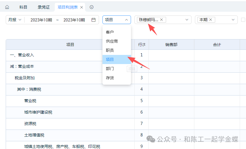 做金蝶软件这么多年接触了很多财务,知道财务月底要出资产负债表和利润表及现金流量表但是其实还有些公司还要单独核算项目利润表,这样公司知道那个项目,或者那个部门的盈利情况项目利润表,它指的是辅助核算项目,它可以是项目类的工程,也可以是部门,或者是公司的不同店铺比如按工程项目核算,出每个工程项目利润表,需要知道每个工程每月的主营业务收入,主营业务成本,销售费用,财务费用等,单独算出每个工程的利润情况那KIS系列产品都没有这种报表,只能手工根据科目余额表明细账去计算每个月都要手工在EXCEL表上计算,特别麻烦又怕数据出错没想到在仅仅只需要几百块钱一年的精斗云会计上就实现了这个功能有个客户之前用的我们的专业版软件,只是做纯财务账的,之前精斗云没出来之前,就和我提过公司让出项目利润表,我让她做自定义报表,不过每多一个项目,就要做一个报表,调公式,特别麻烦后面精斗云出来后,马上告诉了她,很快就因为这一个功能就马上升级精斗云了,就仅仅为了用到这一个功能可能这个功能对有些公司来说没有任何意义,但对另一些少部分客户来说,是特别需要的功能,可能月底出报表减少好多工作量,简直是雪中送碳比如公司是一个做工程的公司,需要统计每个项目的盈利情况,需要出项目利润表2.打开会计科目,打开损益类科目,首先先在一级科目下面增加具体的二级科目,比如收入下面有什么收入,销售费用,财务费用下面有哪些科目,及支出的具体科目那些科目需要体现在项目利润表上,那么科目就需要挂,可以一个个手工挂,如图,销售费用下面的办公用品挂项目也可以批量把收入成本费用科目全部挂上项目,左边把科目全部打钩,右上角批量操作里面,把项目打上钩3.基础资料和参数都设置好了后,现在我们开始看一下凭证怎么录入的吧录分录时,先选择会计科目,然后需要再选择相应的项目内容,如下图所示当月的凭证全部录完后,包括收入成本费用等,也结转了损益,那我们打开报表里面的项目利润表这里我们可以选择项目,比如珠穆朗玛峰装电梯项目,右边可以选择按月,还是按年查询,那么只要做过凭证的科目,那么金额就会在这个表里面体现比如公司有好几个销售部门,也可以把会计科目按辅助核算挂上部门,然后每个部门的销售收入,产生的销售费用,财务费用等,算出每个部门的盈利情况在金蝶KIS系列产品很难实现的功能,在精斗云云会计里面实现起来原来这么简单,而且使用起来特别方便和实用