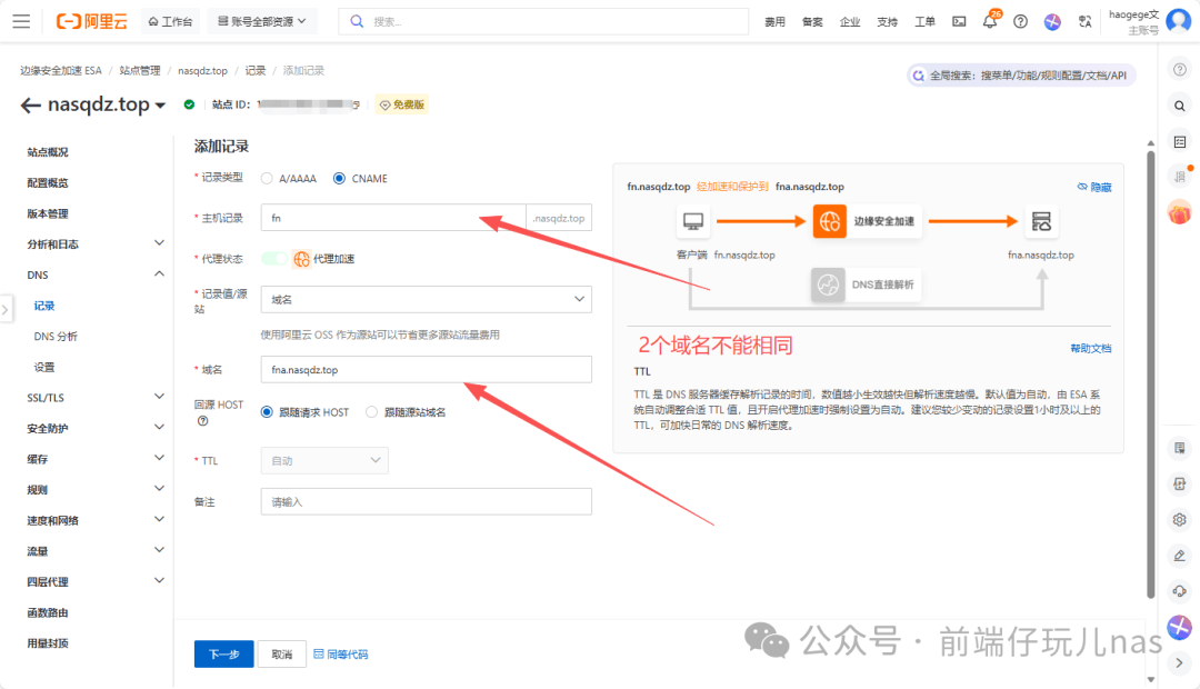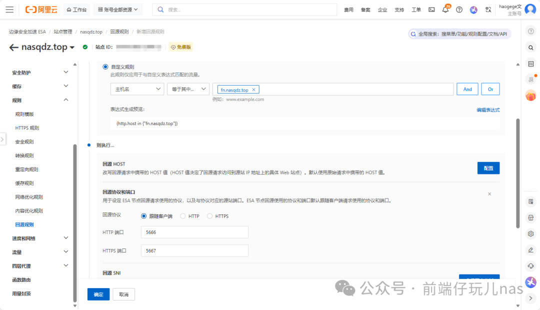 如何查看是否有IPV6呢?📱如图IPV6带有网关地址以及DNS地址的,那就是没问题的。 ![]() 开始实战原理其实就是让阿里云ESA使用IPV6回源我们相应的地址。 配置DDNS前端仔这里新购的域名,然后禁用了IPV4,只解析IPV6地址。 ![]() 通过域名+端口是能够访问到,说明DDNS已经生效了。 ![]() 配置ESA![]() 🥊 接入方式这里我们选择CNAME。与之前文章有点不同。 ![]() 🪀 手动将DNS记录添加到域名服务商处。(前端仔这里是阿里云的域名) ![]() 🎮 站点添加成功以后,进入站点添加一条DNS记录。 这里 ![]() 🔫 添加以后同样需要在域名服务商处添加DNS记录。 ![]() 添加一条回源规则,更改回源端口,这里我们填写上飞牛的端口。 ![]() 效果展示📛 前端仔为了方便,直接关闭了电脑的IPV6网络。 ✅ 使用域名访问,成功! ❓:访问速度怎么样? ✅:大家都很关心访问速度,没有备案的域名,个人而言,我能接受。备案后的域名,速度像坐火箭! ❓:使用ESA的前提是什么? ✅:需要一个域名以及拥有公网IP(IPV6即可)。 ❓:回源规则只能填5个怎么办? ✅:机器自己部署一个nginx、caddy或者lucky等web服务做反向代理,回源规则配置在这些服务开放的端口上。 阅读原文:原文链接 该文章在 2025/12/31 10:34:16 编辑过 |