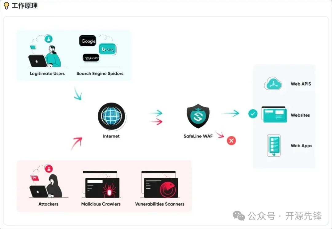上面三个场景可以看到,SafeLine 的作用非常清晰,在应用之前建立一道“强制防线”。哪怕web本身漏洞存在,只要流量经过 WAF,攻击就会有完全不同的结果。 快速安装、使用SafeLine 的部署环境要求很低,普通服务器即可满足需求: