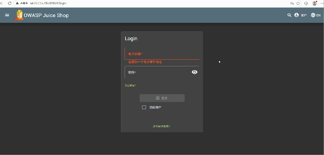 项目体验展示为了体验防护效果,开源君在本地搭建了一个web站,同时用3000端口直连应用(无 WAF) ,8888端口通过 SafeLine 代理(有 WAF)。 所有攻击请求完全一致,唯一的区别只是,请求是否经过 WAF。 场景1:绕过登录,直接拿到管理员权限这是最经典的一个场景。 在 3000 端口上,登录框几乎就是“裸奔状态”。开源君随手在用户名里塞了一段常见的 SQL 注入语句,密码随便填,点一下登录——页面直接跳转成功,右上角赫然显示着