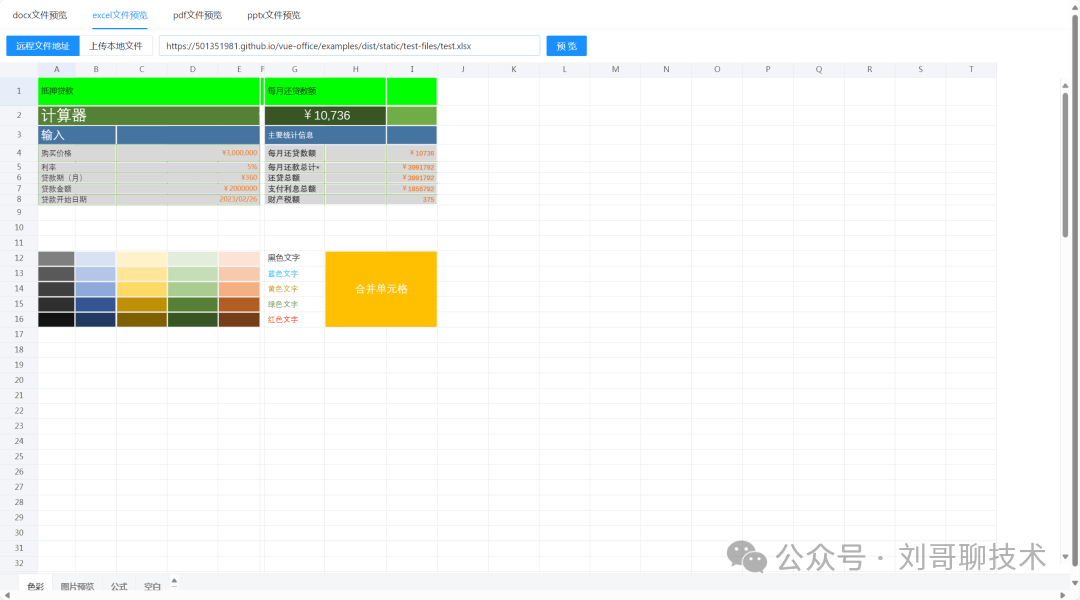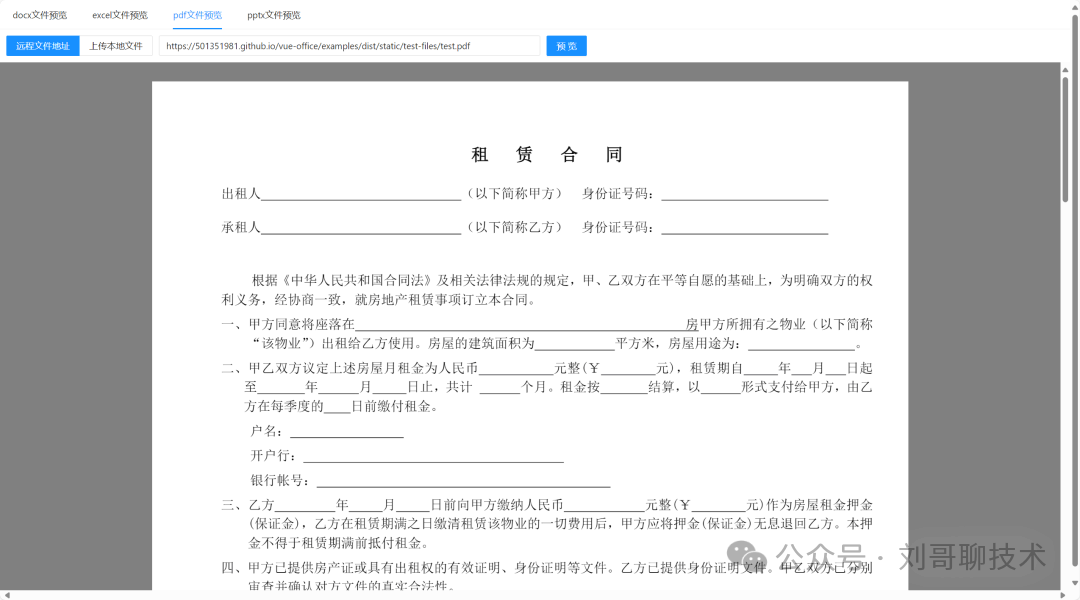它不依赖后端转换,所有解析和渲染都在浏览器端完成,真正做到了“前端闭环”。对 Vue2 和 Vue3 均友好支持,通过 目标很明确:成为使用最简单、功能最强大的文件预览库。 前端:几行代码,搞定预览使用方式极其简单。以预览一个 Word 文档为例: 不管是远程 URL、Blob 还是上传前的 Excel 预览还支持列宽自适应、最小行列控制、甚至通过钩子函数修改单元格内容;PDF 则基于成熟的 PDF.js 封装,稳定可靠。 后端:无需依赖,纯前端方案这是 vue-office 最大的优势之一:完全不需要后端参与。所有文档解析、样式还原、分页渲染均由前端完成。 这意味着: