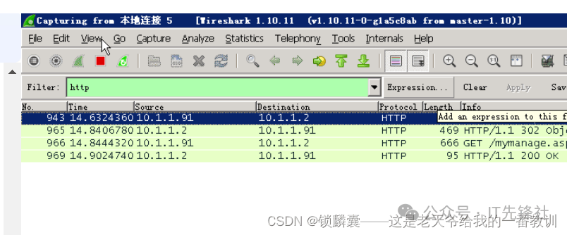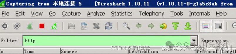 四、实验过程与分析1.使用wireshark抓取数据包1)设置过滤规则 在“Filter”中填写“http”并回车,表示只过滤HTTP协议,选择网卡后,单击开始,进入抓包模式。 ![]() 抓包模式如下图: ![]() 2)切换到用户终端机 点击“管理留言”,输入用户名(admin)与密码(admin123)进入管理界面。