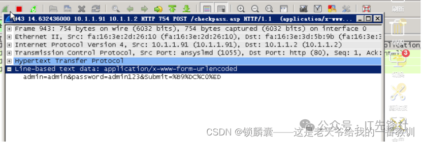 ![]() 2.对wireshark捕获的数据进行分析1)切换到代理服务器 ![]() 查看捕获到的数据。 2)分析捕获到的数据 逐条分析捕获到的数据,发现用户终端发送的用户信息(用户名与密码)。 ![]() 五、实验结果总结1.如果你是用户并设置了某代理服务器,你可能面临以下信息监听风险