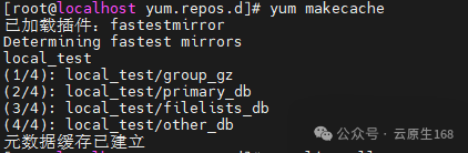 repomd.xml primary.xml.gz filelists.xml.gz other.xml.gz comps.xml /var/cache/yum/x86_64/7/local/repodata/repomd.xml/var/cache/yum/x86_64/7/local/repodata/primary.xml.gz