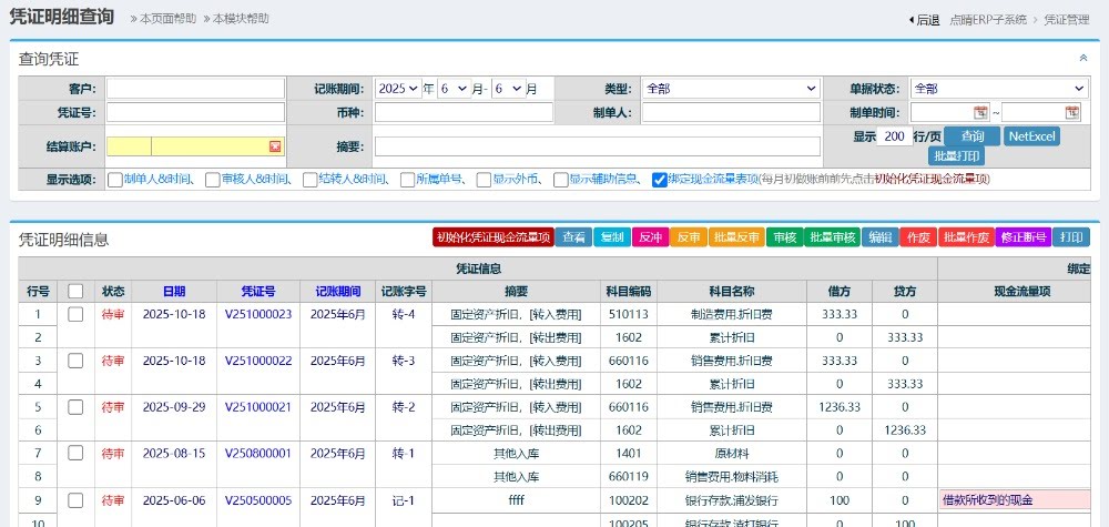 以上的凭证全部是基于点晴模切ERP系统的业务单据配置然后自动生成的,几乎不需要去手工输入凭证,只需要核对业务单据——生成凭证——核对凭证即可,其中有一部分不是很关键的过程没有进行记录。