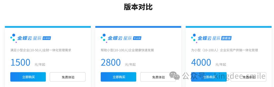 [点晴模切ERP]金蝶云系列(KIS、云会计、云星辰)各个版本价格对比表