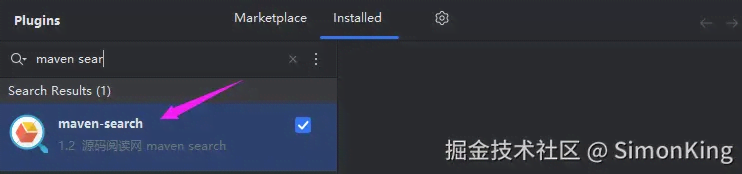 直接在 IDEA 的插件市场(Plugins)中搜索 “Maven Search” 并安装即可。
