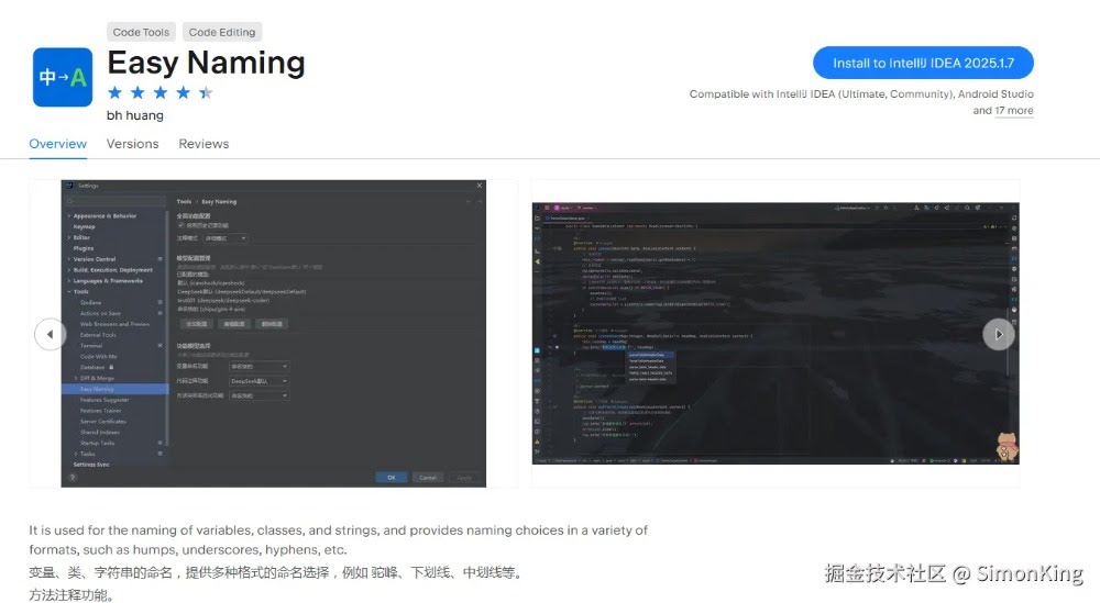 同时提供IDEA插件,简直是变量命名困难症程序员的福音。