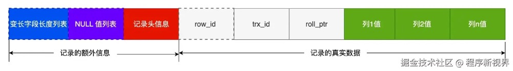 数据库中的一条记录最终以行的方式存在储磁盘文件中。在MySQL中,InnoDB默认采用COMPACT的行存储格式。