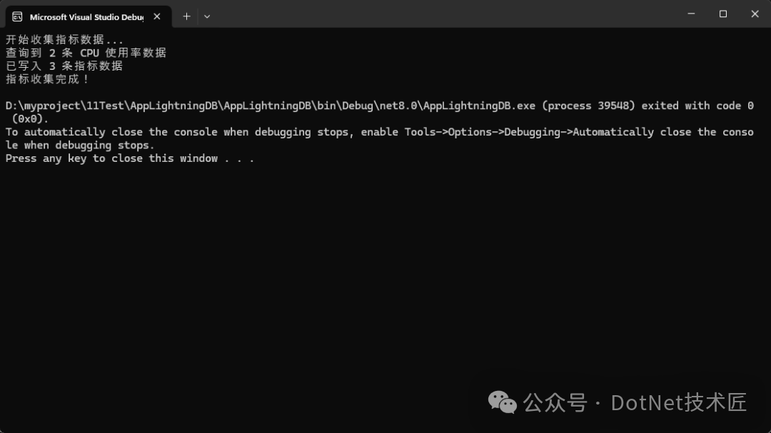 Console.WriteLine($"已写入 {batch.Count} 条指标数据");