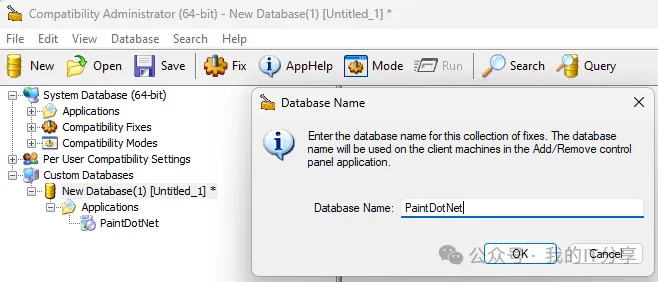 打开64位的ACT,按下图步骤操作。点一下左边列表的new database,然后点上面的Fix按钮,输入要被提权的软件的名字,然后选择这个软件的执行文件,Next,勾选RunAsAdmin和RunAsInvoker,然后一直Next直到Done完成。